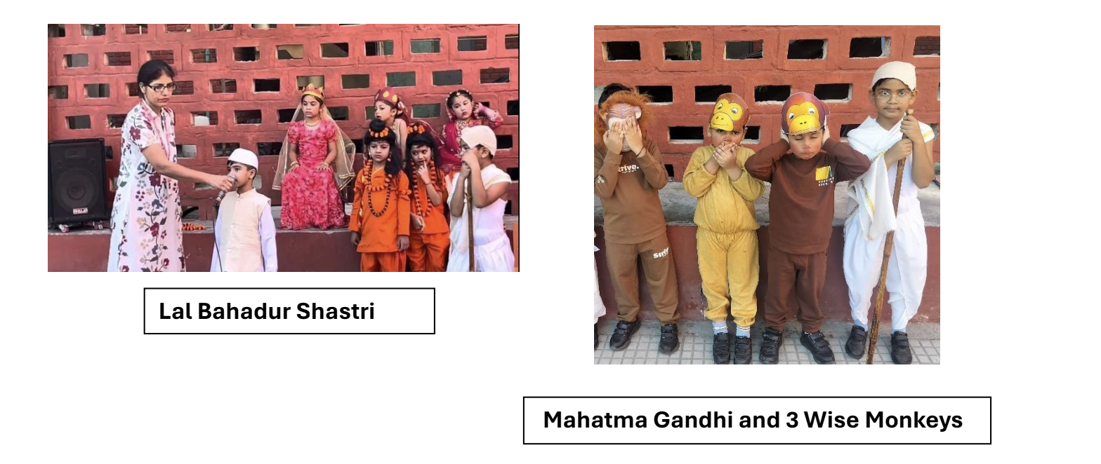 The assembly also honoured our great leaders. Children dressed as Mahatma Gandhi with his three wise monkeys, shared the message “See no evil, Hear no evil, Speak no evil.” Another child portrayed Lal Bahadur Shastri Ji and proudly echoed his inspiring slogan “Jai Jawan, Jai Kisan” reminding us of the respect we owe to our soldiers and farmers.